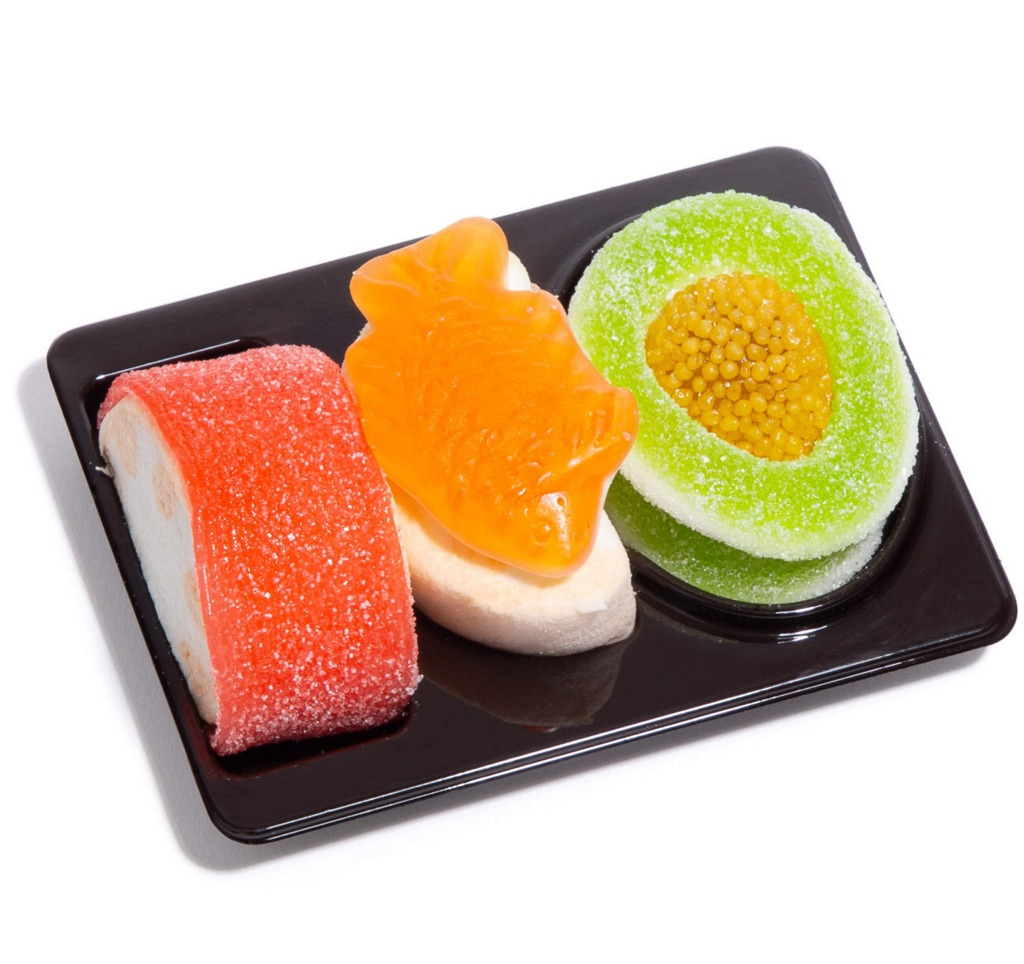 Tiny detailed gummies look so much like California roll and sushi pieces. Perfect snack size.