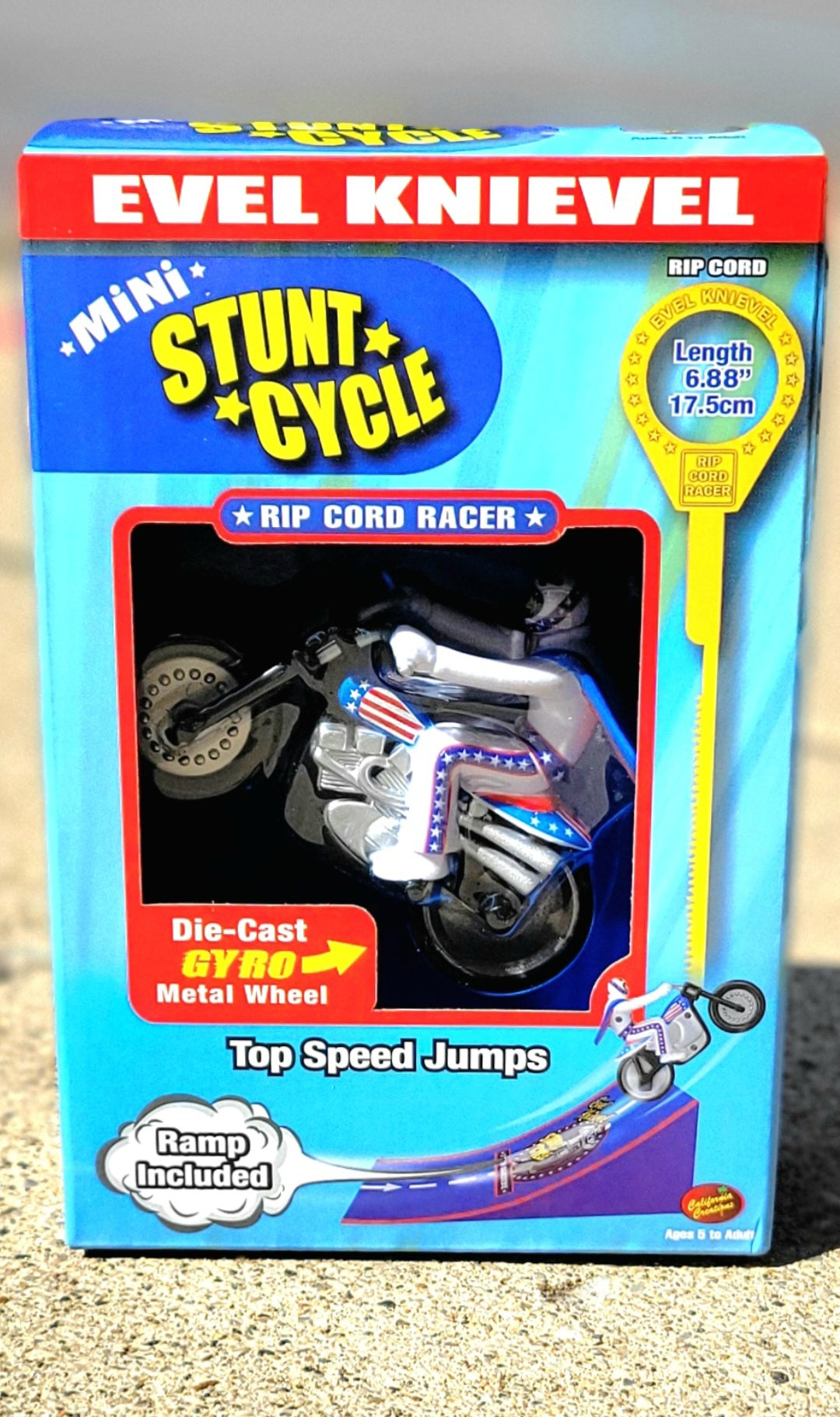 Get ready to experience the ultimate thrill with the Evel Knievel Mini Stunt Cycle Rip Cord Racer. This compact set packs a punch, delivering heart-pounding action and daredevil excitement.