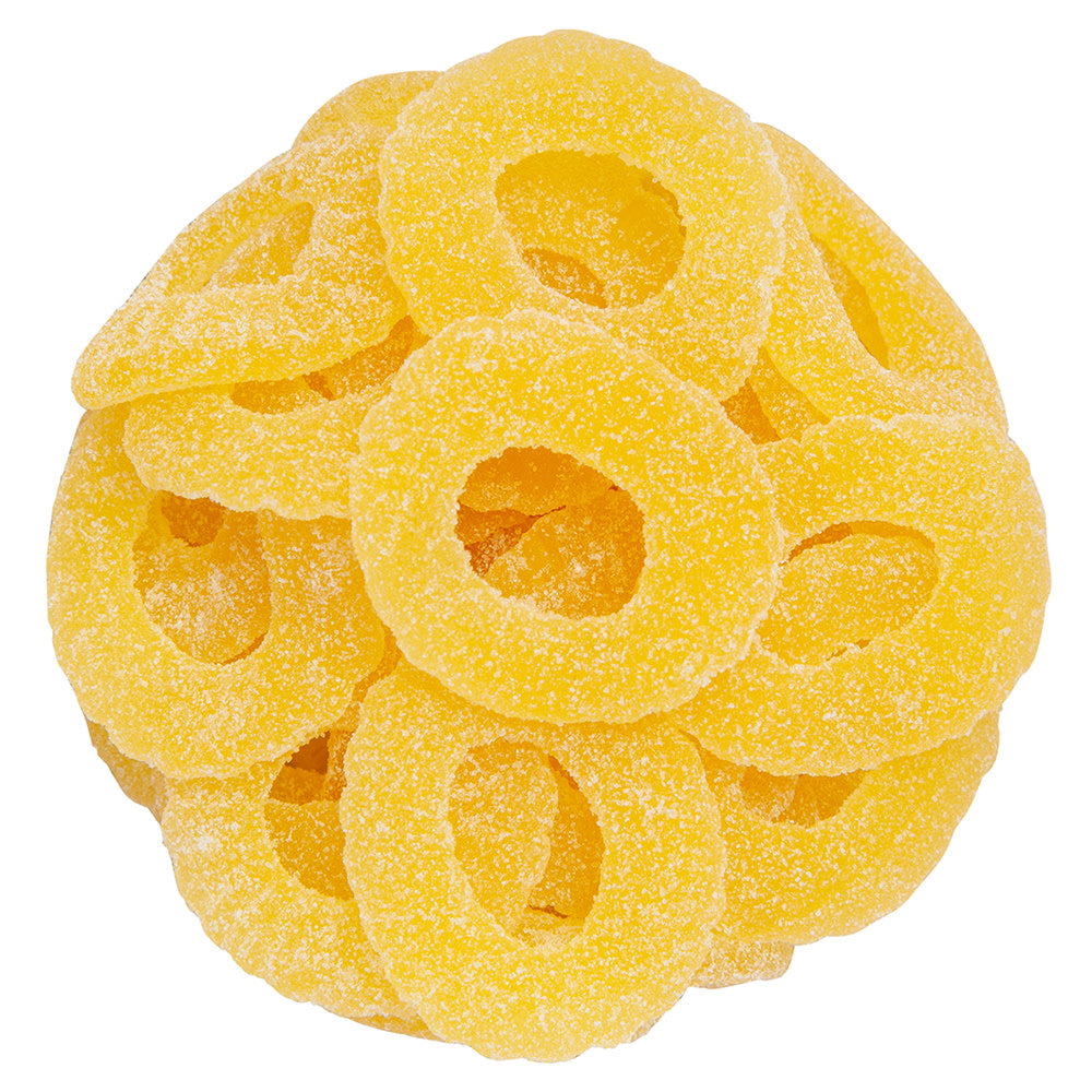 Gummi Pineapple Rings have a gummy texture and a delicious pineapple flavor.