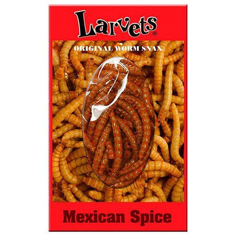 Tired of drinking the entire bottle of tequila, just to get to the worm? You should try Larvets original worm snacks. Not only is it cheaper than booze, it is crunchy, comes in Mexican Spice flavor and you don't need to worry about getting a splitting headache the next morning. Great for parties, Halloween or as an every day snack!