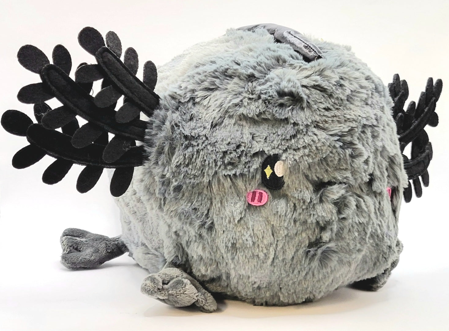 Add this cute gray and black Axolotl to your plush collection.