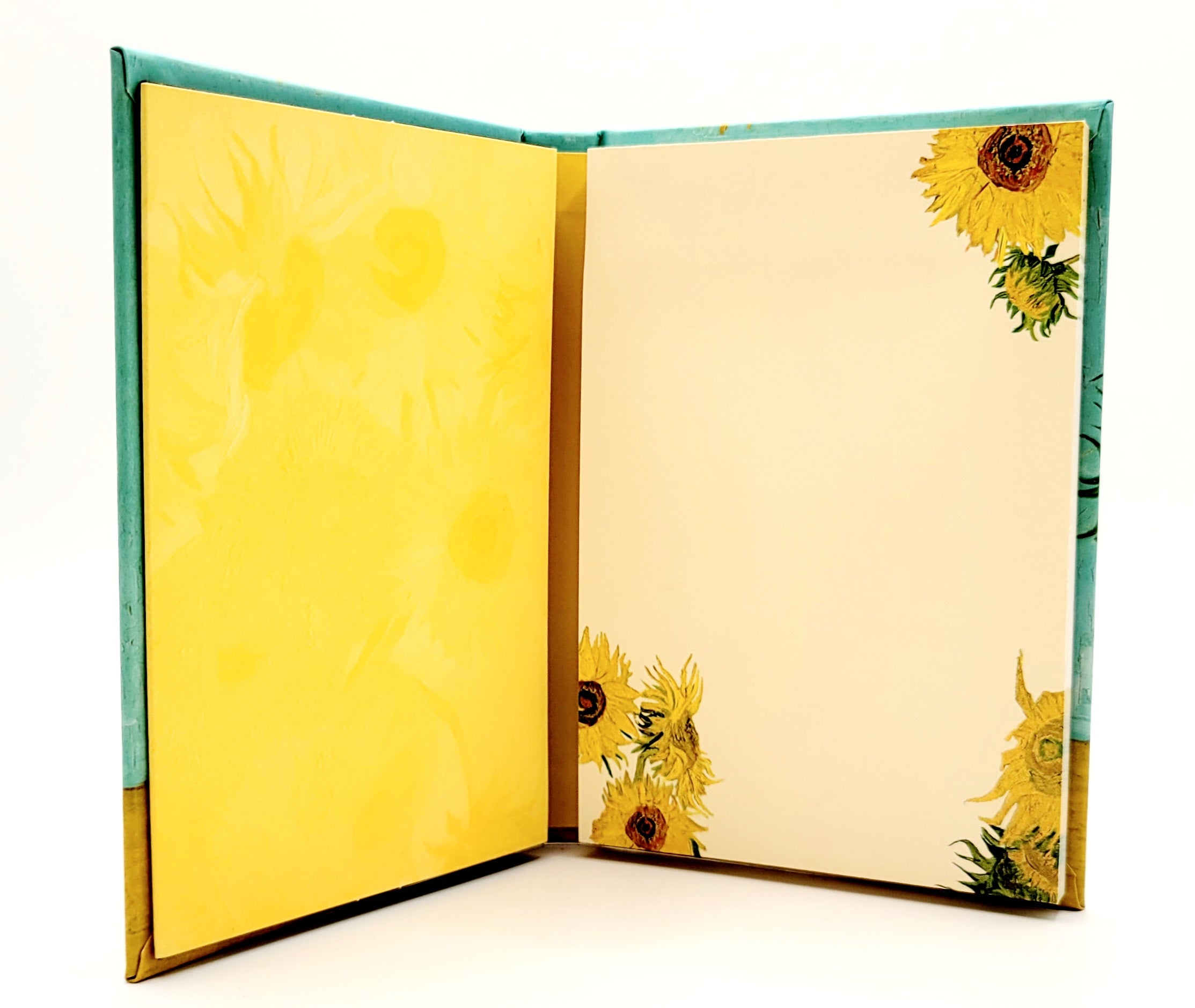 This hardcover sticky note pad has a beautiful sunflower theme based on Vincent Van Gogh's famous artwork.